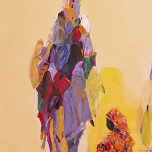 Rashid ha señalado que, si bien todas las guerras son un desastre, el actual conflicto armado en Sudán ha sido una verdadera tragedia para las mujeres de su país. Sin embargo, aún bajo la hostilidad de la guerra, ellas luchan por sobrevivir, por mantener y cuidar de lo que queda de sus familias. Rashid las identifica a ellas en sus obras por su vestimenta sudanesa; una rica mezcla de tradiciones que se manifiestan en una paleta de colores que varían desde tonalidades vibrantes y festivas hasta los más sobrios, realzando el contraste como coloridos pétalos en el árido desierto de Sudán. En ellas, en su labor, Rashid ve la esperanza de que su pueblo sobreviva tras la guerra, como las semillas de las flores en la arena esperando resilientemente la próxima vez que llueva.