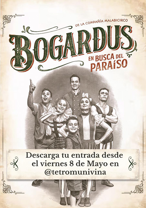 Bogardus: En busca del Paraíso, es un espectáculo de circo contemporáneo que rescata la historia del primer empresario circense que llegó a Chile hace casi 200 años. Una obra que mezcla acrobacia, danza, teatro y malabarismo para conectar pasado y presente en una narrativa escénica de gran formato.
