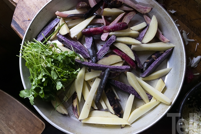 Después de toda una vida como alguera, Silvia cambió de rubro porque la marea roja del 2005 afectó la extracción de mariscos y, si antes disfrutaban de una gran variedad de locos, almejas y erizos, hoy sólo quedan unas pocas almejas. Además, de un día para otro, el último verano definitivamente no hubo más compradores para el pelillo. Frente a esta realidad, Silvia creó un negocio con sus siembras. “No sabíamos qué hacer con las hortalizas, teníamos mucha papa nativa que no terminábamos de comer y tenía que dársela a los chancos, lo mismo pasaba con las verduras y lechugas, era una lástima perderlas. Hasta que empecé a pensar que podía trabajarlas y venderlas”, cuenta Silvia, mientras prepara su tradicional plato de papas fritas nativas con róbalo y ensaladas frescas del huerto. “Acá lo que más sale es el róbalo, se pilla una hora antes y se cocina, aunque en muchas partes no lo preparan por las espinas. Yo me doy el tiempo para limpiarlo y lo ocupo casi todo”, asegura la cocinera, confiando en que el turista y el boca a boca irán consolidando su trabajo.
