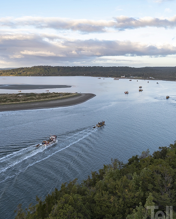 No son más de veinte las familias vivientes de la caleta, aunque durante el tiempo del pelillo fueron muchas más. Ocurre que, además de la marea roja, la educación también influyó en la disminución de población porque la Escuela Pública de Inío sólo llega hasta octavo y para continuar con la enseñanza media hay que migrar a una ciudad cercana, razón por la que muchas familias han dejado sus casas en abandono. “Los papás se van detrás de los hijos y después se acostumbran y se terminan quedando en la ciudad. Creo que por la comodidad, porque los inviernos acá son largos y duros, se han llevado gran parte del borde costero y, además, siempre hay que estar navegando más de cinco horas para ir a comprar víveres y conectar con la isla y el continente”, explica Miguel Nenen, guardaparque de Tantauco y dueño del único almacén del lugar que, entre otras cosas, abastece la cocinería de Silvia. Agrega que, hasta el 2001, la escuela tenía treinta y nueve alumnos y hoy sólo cinco se preparan para los estudios superiores.