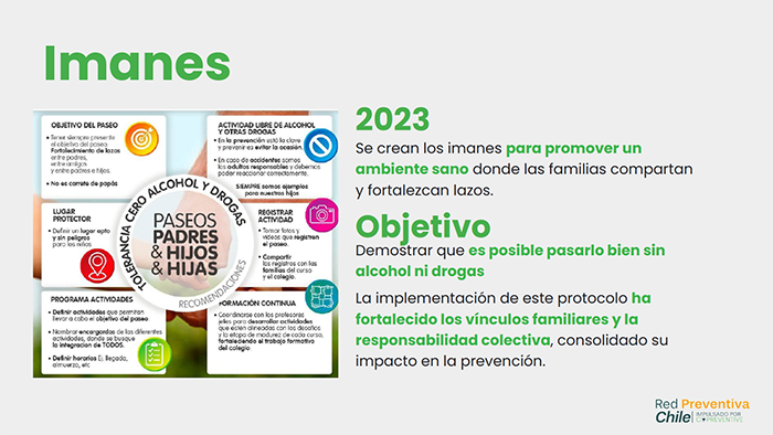 La Red Preventiva Chile no es un programa estatal ni una campaña de moda. “Es una acción colectiva por nuestros hijos que articula Centros de Padres —que tienen un rol protagónico—, equipos directivos, centros de alumnos, municipios y expertos con una visión: retrasar la entrada al consumo de sustancias y promover hábitos saludables”.
